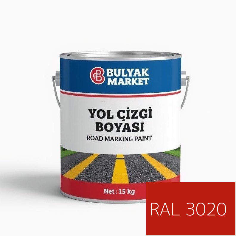 Alkid Solvent Bazlı Yol Çizgi Boyası | Soğuk Yol Çizgi Boyası – 15 kg RAL 3020 Bayrak Kırmızı(Traffic Red)